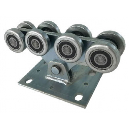 Роликовая опора НХТ  для автоматических ворот. Качество роликовых кареток высокое. Применяемые подшипники – 6303 (в аналогичных изделиях конкурентов стоят более слабые 6203). Подшипники соответствуют ГОСТу, крутятся легко. Люфты на подшипниках отсутствуют, что говорит об их хорошем качестве. Люфт на плавающей оси также отсутствует, что гарантирует минимальное клевание ворот.